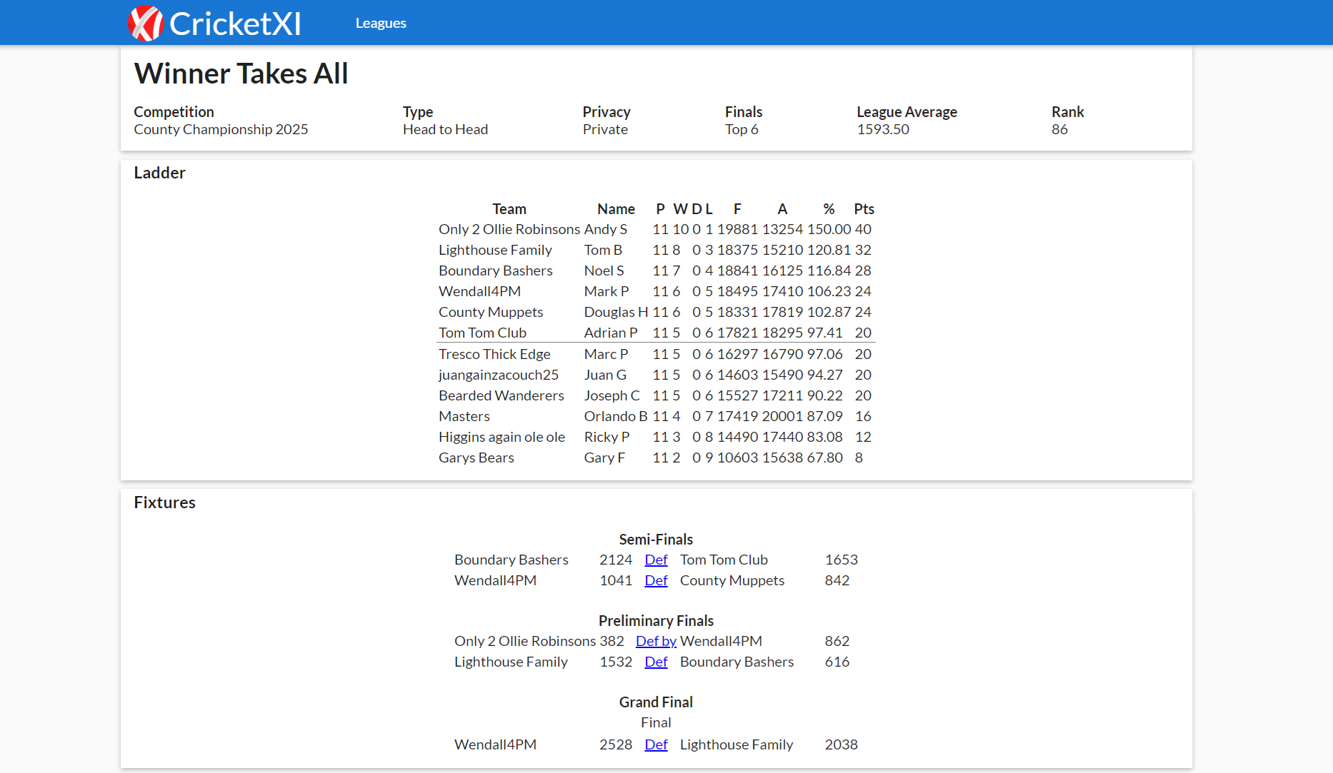 COUNTY CHAMPIONSHIP - 2025 - MARK PEARSON - WENDALL4PM - 2528 - £60