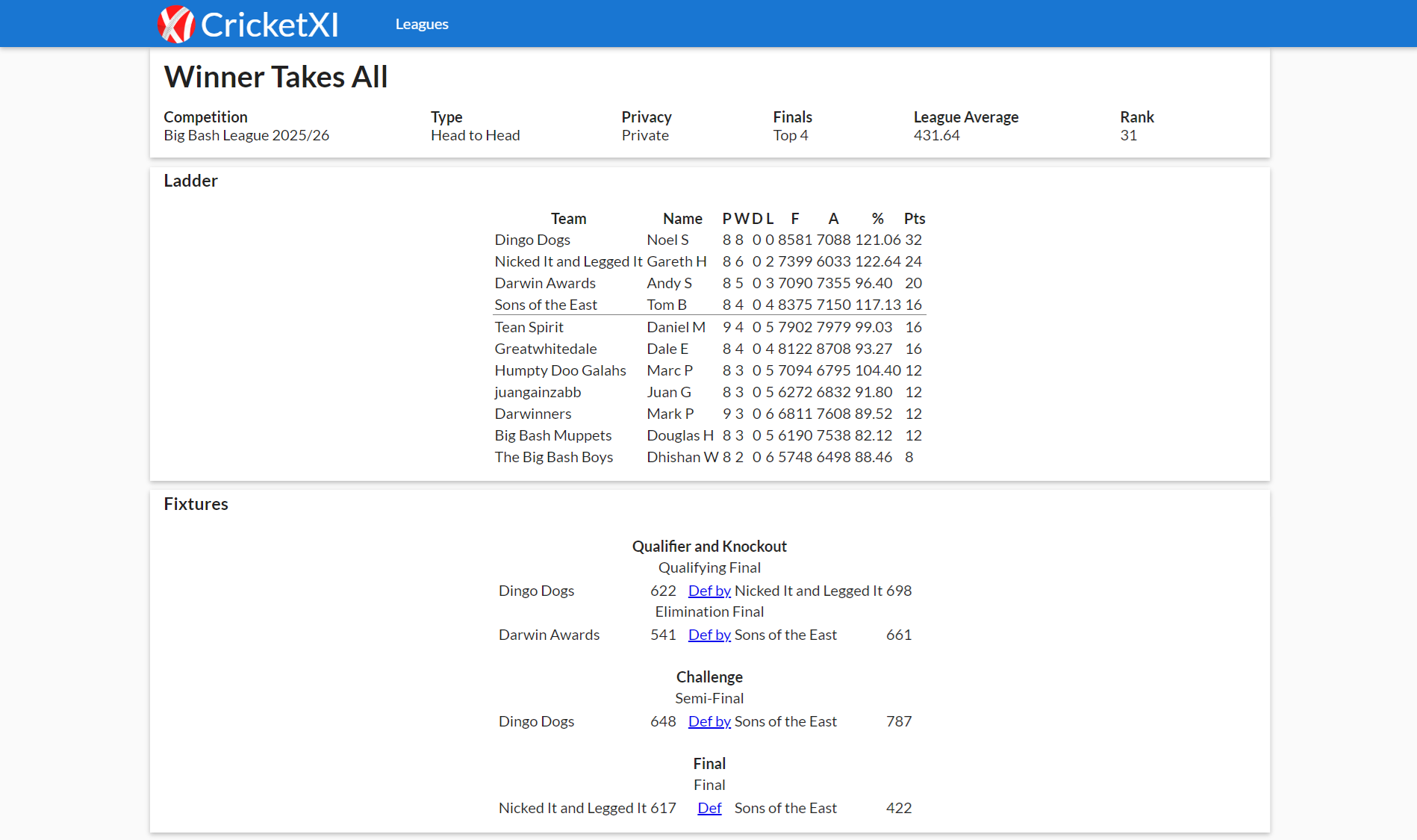 CRICKET XI FANTASY CRICKET GAMES