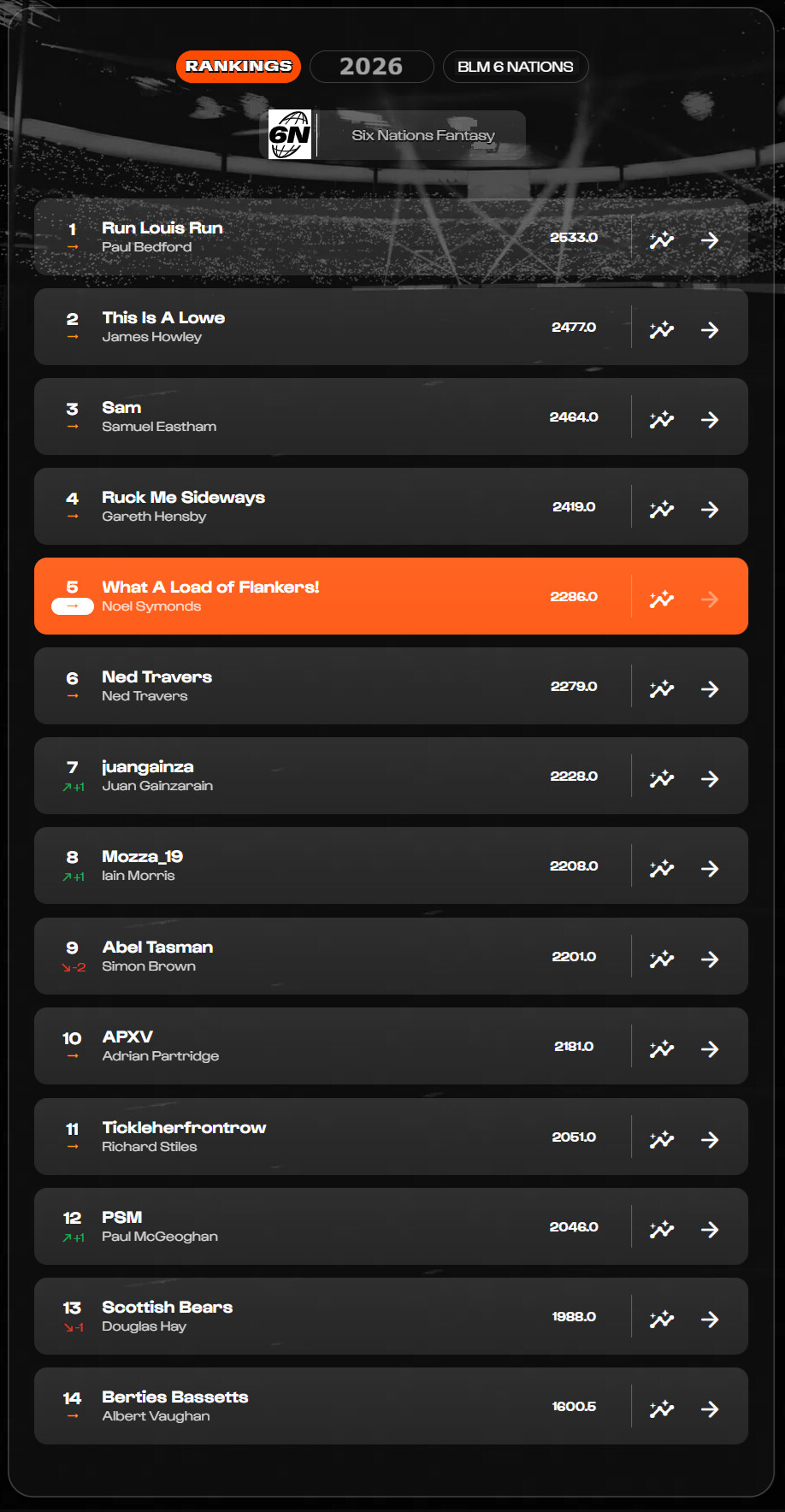 YEAR - MANAGER - TEAM - TOTAL SCORE - WINNINGS