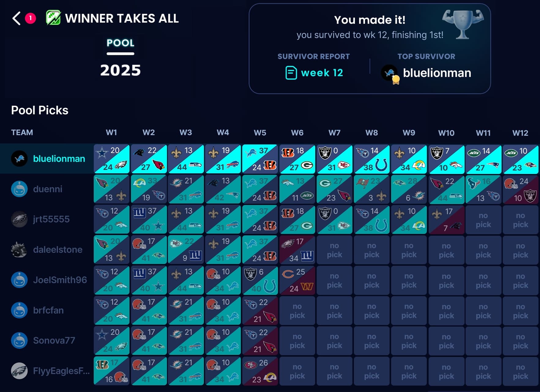 NFL Week 12 ends and we have a winner - me