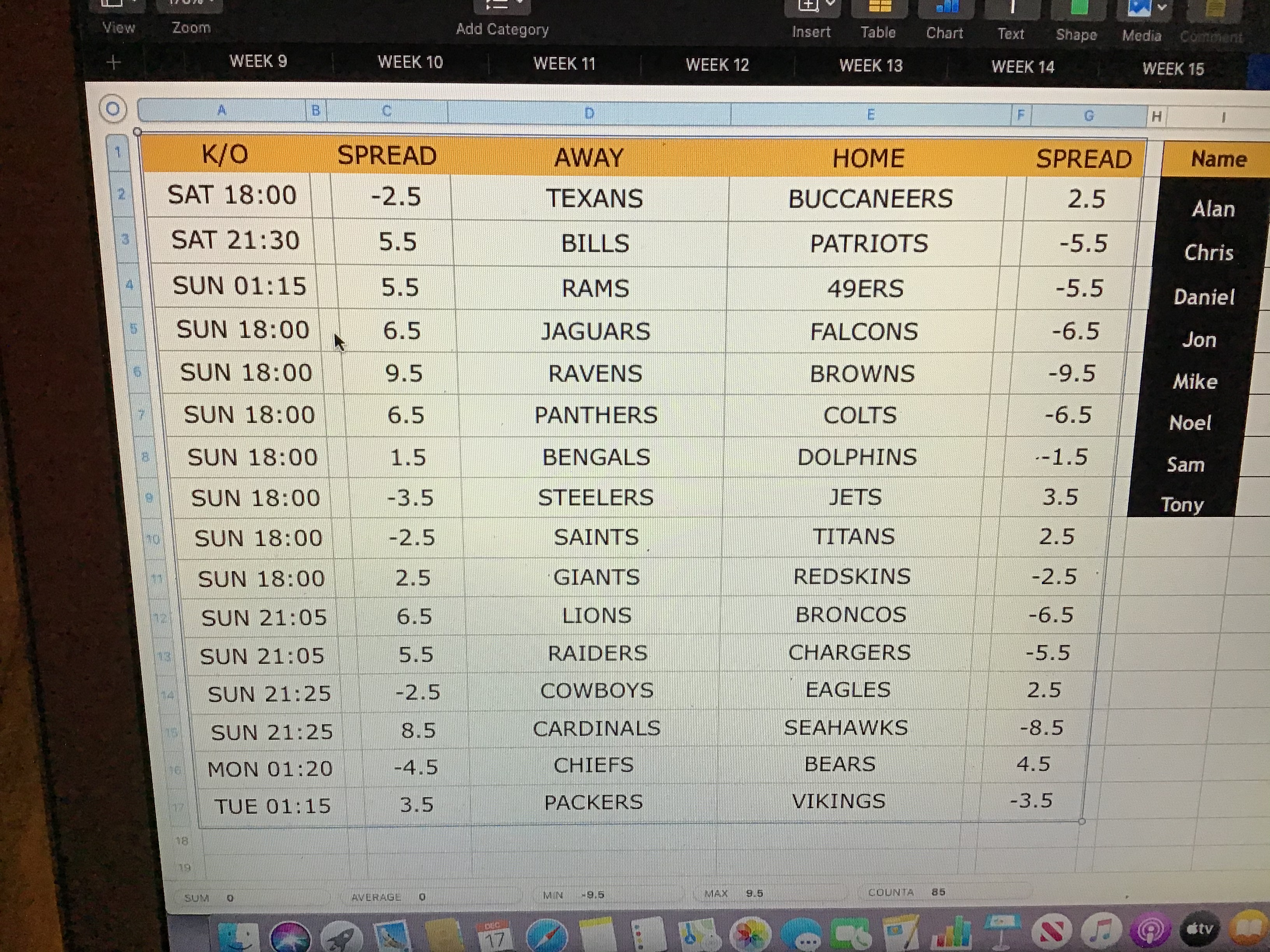 Cheers guys…just to confirm Ravens -9.5 @ Browns 9.5