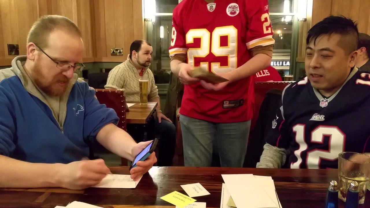 I have put the 12 teams that made it to the post season into 12 envelopes. I now sell the envelopes at £10 each (this makes the prize money). As people purchase them they write their names on them - no one opens them until they are all sold. I always put in for the last one left (I don’t pick mine always have the 12th one) as I love the NFL and a gamble to. When all the envelopes are sold I go back to the people who bought them and get them to open their envelope - for those people I don’t see in person I will make a video up and put It on you tube sending them a link so they can watch me open all the proxy envelopes and see who they got.