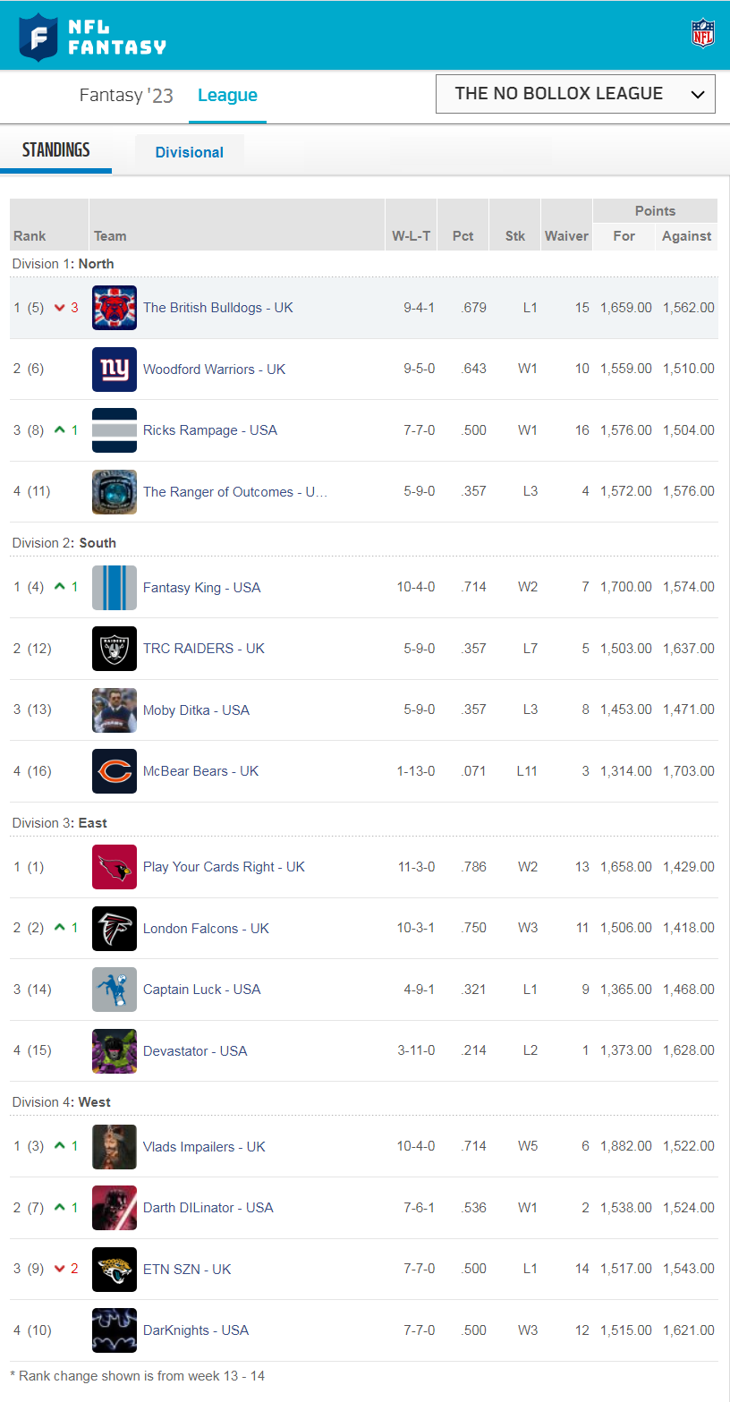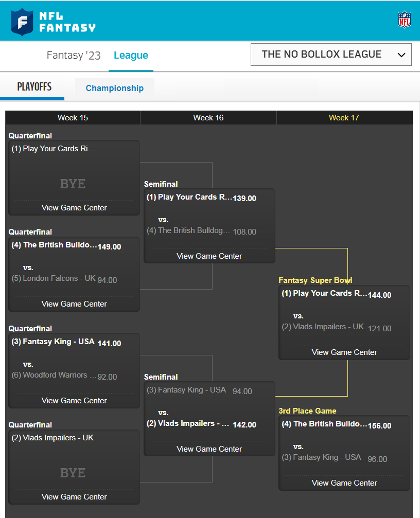 I currently have no one on my waiting list for either side (UK/USA) so if any American reading this would like the chance to represent for there country and have a go at bashing Brits at fantasy NFL football just hit me up - PM me or post on this thread.